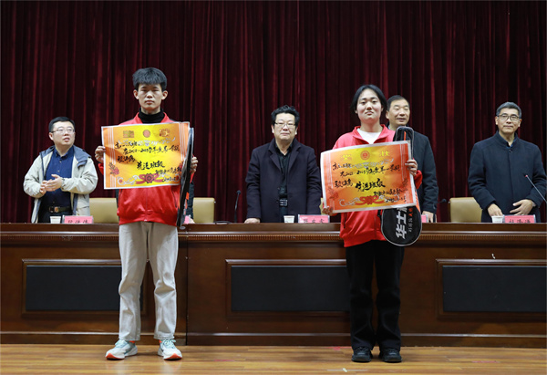 会议首先由任正超宣布表彰决定:授予高二三班等4个班级“先进班集体”荣誉称号;授予龙俊宏等67名同学“尖子生”荣誉称号;授予孙悦等120名同学“优秀生”荣誉称号。与会领导为获奖班级代表及同学颁发奖状并合影留念。随后,张东睿围绕“什么是教育”“什么是文化”“什么是成功”作了讲话。同时对高考教学部下一步工作提出明确要求:一要明确目标;二要压实责任;三要细化管理;四要全力服务;五要激励学生“有执着的信念,有拼搏的精神”,为春季高考取得优异的成绩而奋斗。最后,表彰大会在全体同学激昂有力的宣誓声中落下帷幕。