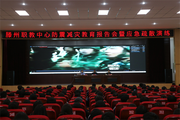 滕州市中等职业教育中心学校举办防震减灾教育报告会暨应急疏散演练