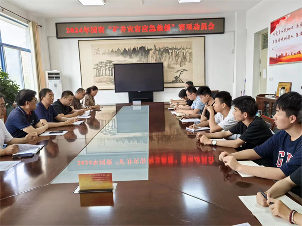 杨营首先介绍了2024年“矿井灾害应急救援”赛项举办及承办的相关情况;指导教师代表郭昊介绍了现阶段赛事的准备情况,并表示将坚定信心、克服困难、加强训练,争取在比赛中获得佳绩;学生代表王惠立表示感谢学校提供参加国家大赛的机遇,将刻苦训练、掌握一技之长以回报学校。