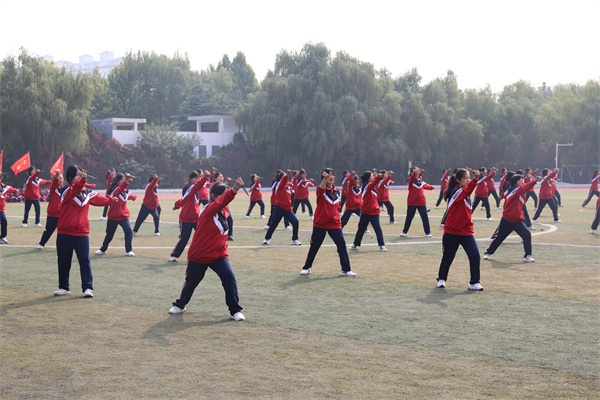 匕首操、军体拳演练方队依次上场,开展军训成果汇报。各方队队员目光坚定、步履矫健、动作整齐,锐不可当的匕首操整齐划一,气势恢宏的军体拳英姿飒爽,将职教学子昂扬奋发的精神面貌展现得淋漓尽致,赢得了现场师生的阵阵掌声和欢呼声。
