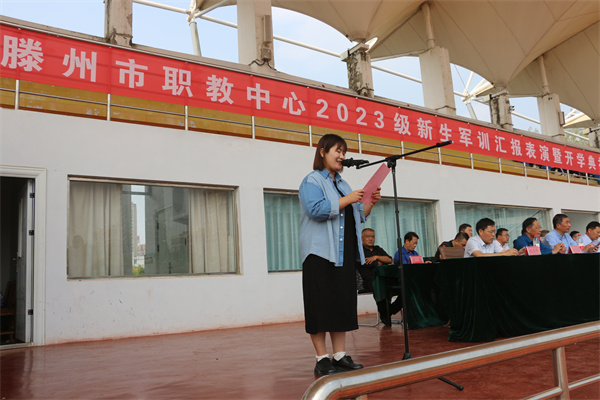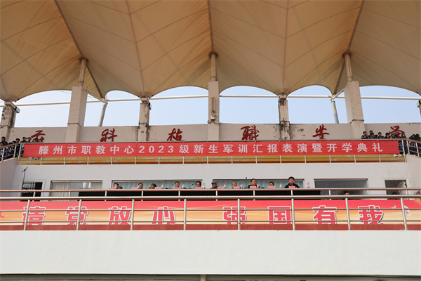 滕州市中等职业教育中心学校举行2023级新生军训汇报表演