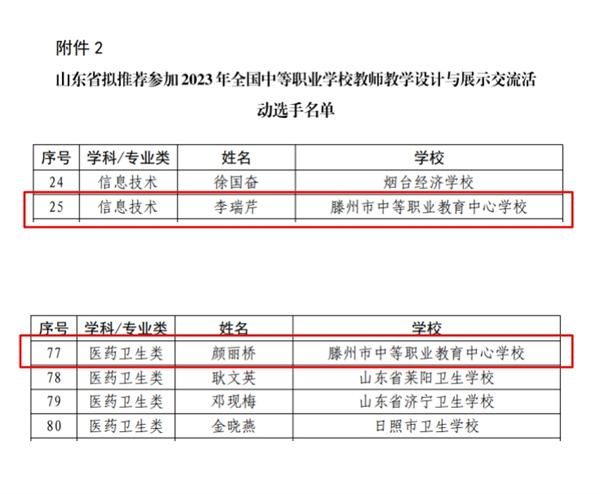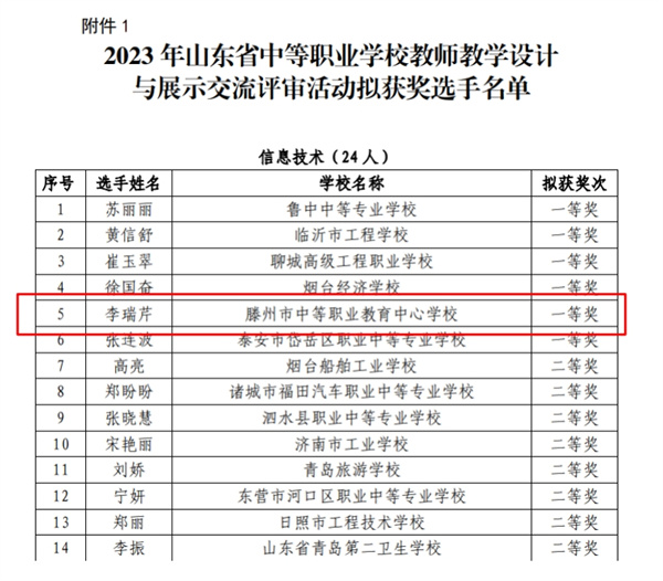喜报!一等奖2项!滕州市中等职业教育中心学校在全省教学设计与展示交流评选活动中再创佳绩