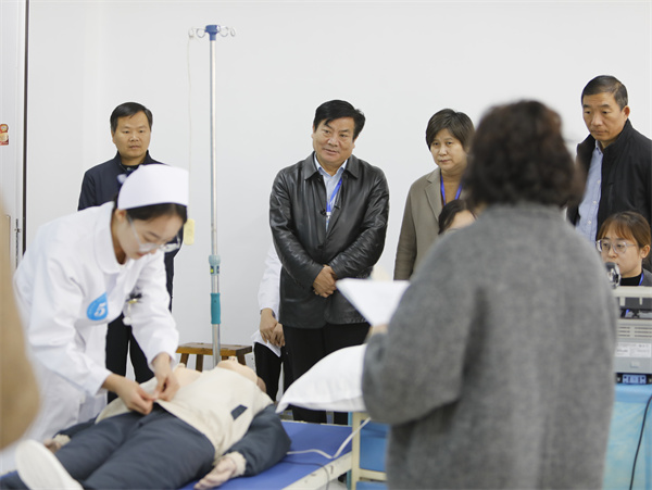 本站讯(通讯员 倪晓菲)2023年11月22日,由枣庄市教育局、枣庄市人力资源和社会保障局主办,滕州市中等职业教育中心学校承办的枣庄市2023年“鲁班传人”职业技能大赛——中等职业学校教师技能大赛护理技能赛项拉开帷幕,来自枣庄市6所职业学校的21名护理专业教师参加了本次比赛。枣庄市教育科学研究院院长邓淇、枣庄科技职业学院党委书记谢宝华、枣庄市教育科学研究院副院长兼职教研室主任张颖梅到场指导工作。