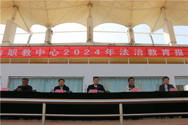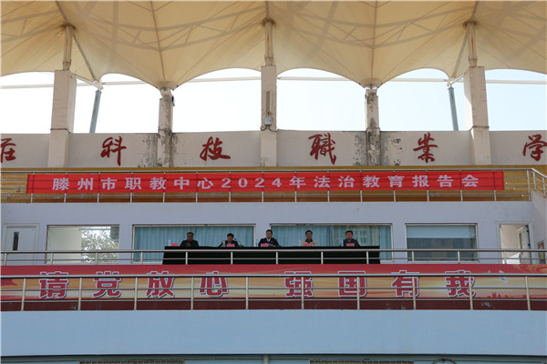 本站讯(通讯员 唐怡如)为进一步落实学校《关于进一步加强学生安全教育管理的通知》要求,深入推进学生安全教育工作,增强学生法治意识,3月29日下午,滕州市中等职业教育中心学校在体育场举行法治教育报告会。报告会邀请滕州市检察院党组成员、副检察长、四级高级检察官马兆坡主讲,枣庄科技职业学院安全保卫处处长闫东林,学校党委书记张凯,校长助理孔德峰参加报告会,2022、2023级全体学生聆听了报告。