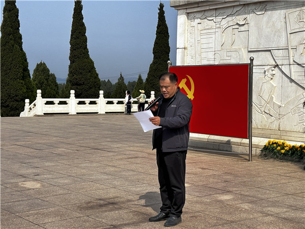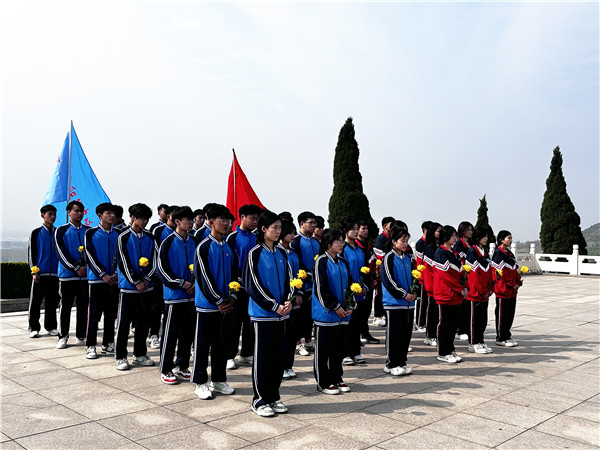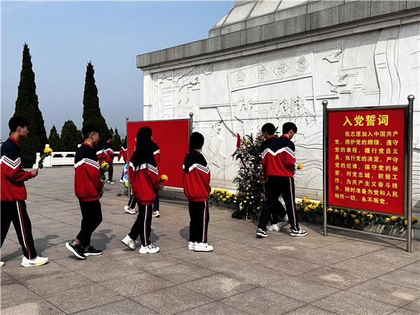 在青松翠柏的映衬下,鲁南人民武装起义纪念碑显得格外庄严肃穆。同学们向烈士纪念碑敬献花篮与花圈,并默哀一分钟。随后,同学们在碑前高声重温入团誓词,声音铿锵有力,彰显青春之志。最后,同学们绕墓一周,深切缅怀英勇牺牲的革命先烈,表达对烈士们的深深敬意与无限哀思。