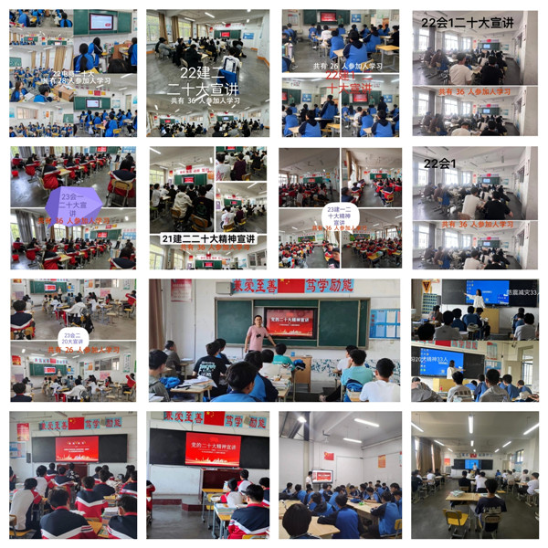 本站讯(通讯员 唐怡如)为深入学习贯彻党的二十大精神,把全校师生的思想和行动统一到党的二十大精神上来,把智慧和力量凝聚到完成党的二十大确定的各项任务上来,更好团结引领广大青少年奋进新征程、夺取新胜利,5月13日,学校以主题班会的形式,开展党的二十大精神宣讲活动,讲述共产党的百年奋斗路,述说共青团的百年发展史。96个班级的2759名同学参加活动。