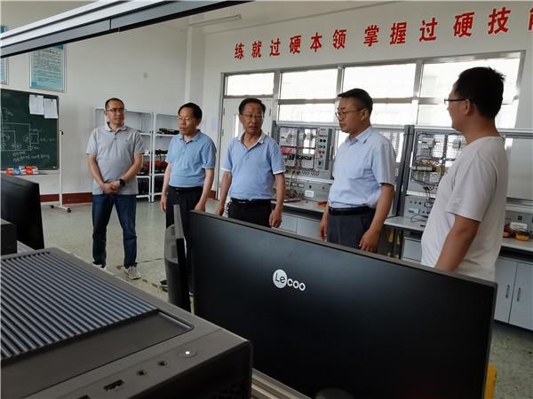 本站讯(通讯员 栗忍)5月28日上午,学校领导杜兆喜、倪玉乔到机电实训楼检查“矿井灾害应急救援”赛项国赛备赛情况,教务处、机电工程专业部相关同志陪同。
