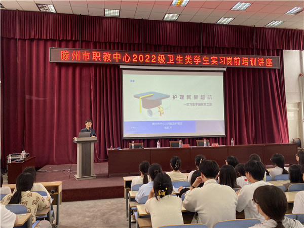 本站讯(通讯员 倪晓菲)为进一步夯实卫生类学生学习成果,促进理论知识与临床实践相结合,引导同学们做好实习前的各项准备,扎实推进实习工作,5月29日,学校在3号楼5楼会议室开展2022级卫生类学生实习岗前培训讲座。滕州市中心人民医院护理部主任张芹芹、滕州市中医医院护理部主任赵忠菊、22级实习生及部分班主任参加了本次讲座,讲座由护理专业部副主任倪晓菲主持。