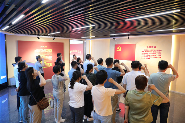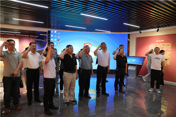 参观结束后,全体党员面对党旗紧握右拳,重温入党誓词,誓言忠诚于党、忠诚于人民,始终坚守党的纪律和规矩。