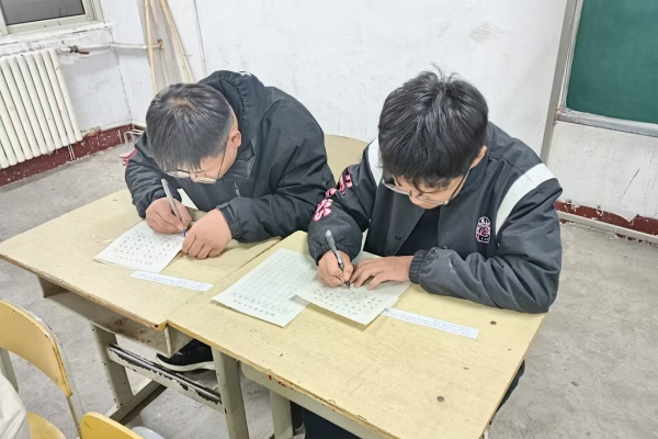 同学们坐姿端正,神情专注,用心书写每一个汉字。他们的字迹或工整娟秀,或苍劲有力,尽显汉字之美,展示出同学们扎实的书法功底和对中国传统文化的认识和热爱。评委从字体、笔画、布局、卷面美感等多角度进行评审,并将优秀作品在校园中进行展览,众多师生驻足欣赏。
