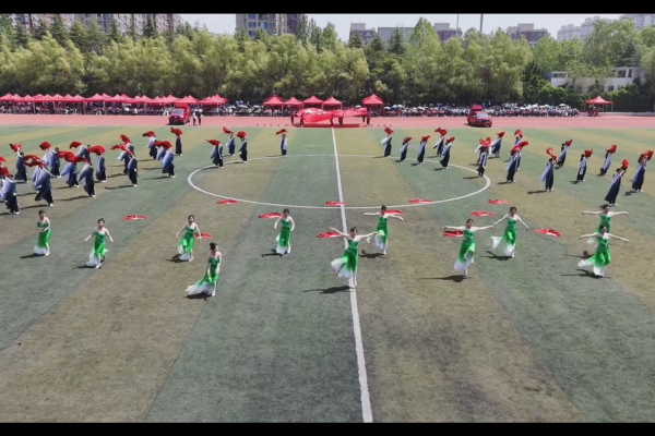 开幕式上,五星红旗在风中飘扬,国歌声响彻整个校园,点燃了全体师生的爱国热情与运动豪情。在学校的大型团体操《扇舞乾坤 中华魂》中,同学们手持折扇,身姿矫健,动作整齐划一。当扇面展开,如鲲鹏展翅,气势磅礴,精彩绝伦的表演赢得了在场观众的阵阵欢呼与热烈掌声。