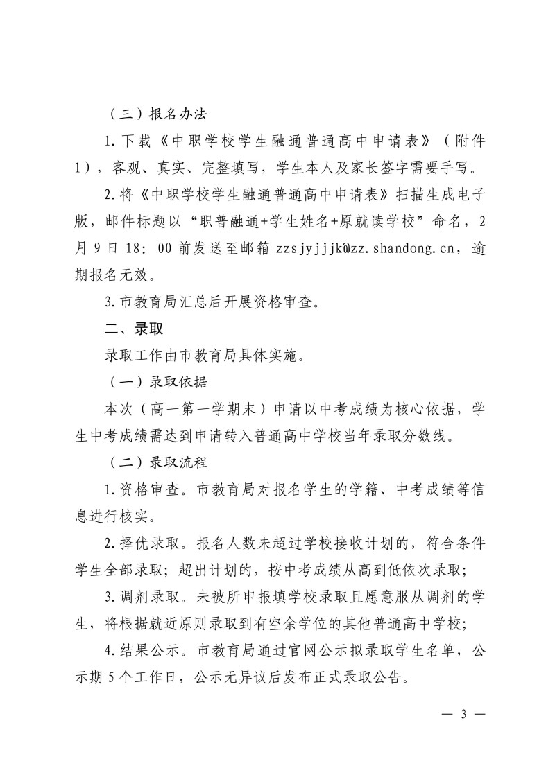 枣庄市中职学校学生融通普通高中工作指南